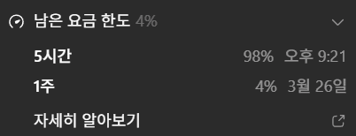 3일이 안 돼서 주간 사용량을 바닥내고 나니 금단 현상이 온다. 열심히 AI와 놀다가 갑자기 못 노게 된 기분이랄까. 당장은 며칠만 버티면 리셋되니 괜찮지만, 걱정은 두 가지다.